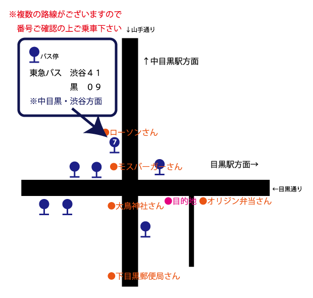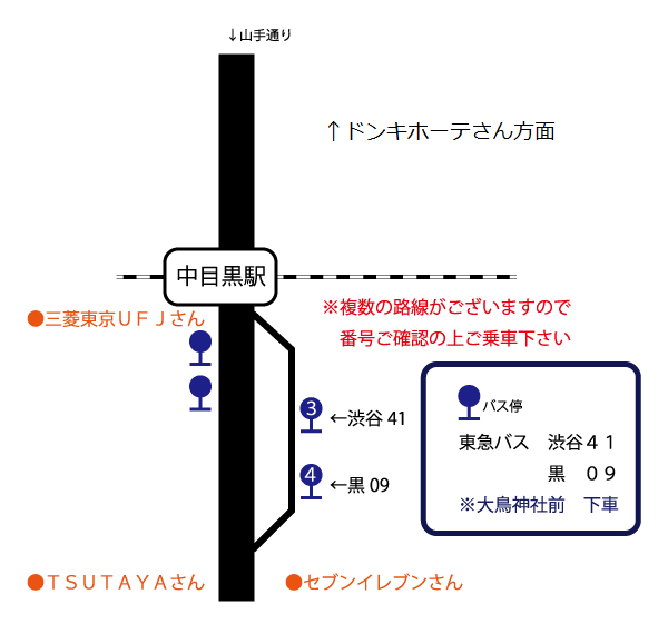 ※中目黒駅前からのバスのご利用はこちらを参照下さい。↓